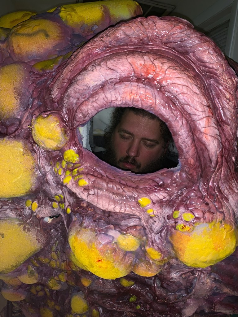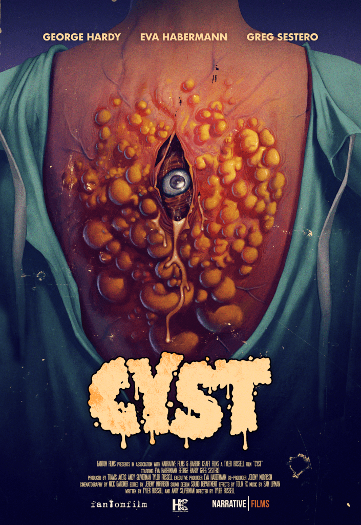 Cyst was a fun little feature film Directed by Tyler Russell that I had the pleasure of working on with Tolin FX. The majority of everyhting was fabricated in house. For this I sculpted various sizes of Cysts, Cyst Skull stage, and lead the fabrication of the Cyst monster suit before finishing it onset and then performing it. It was fabricated out of various types of foam in multiple layers. The details of the suit were sculpted with foam latex right onto the form and then baked out in a makeshift oven. We had many sizes of cyst prosthetics, many stages of the monster, atmosphere, some make shift explosions and various liquid launching using airpowered squibs from Squib FX, sparks, lots of blood and pus/slime, and of course a lot of fun!