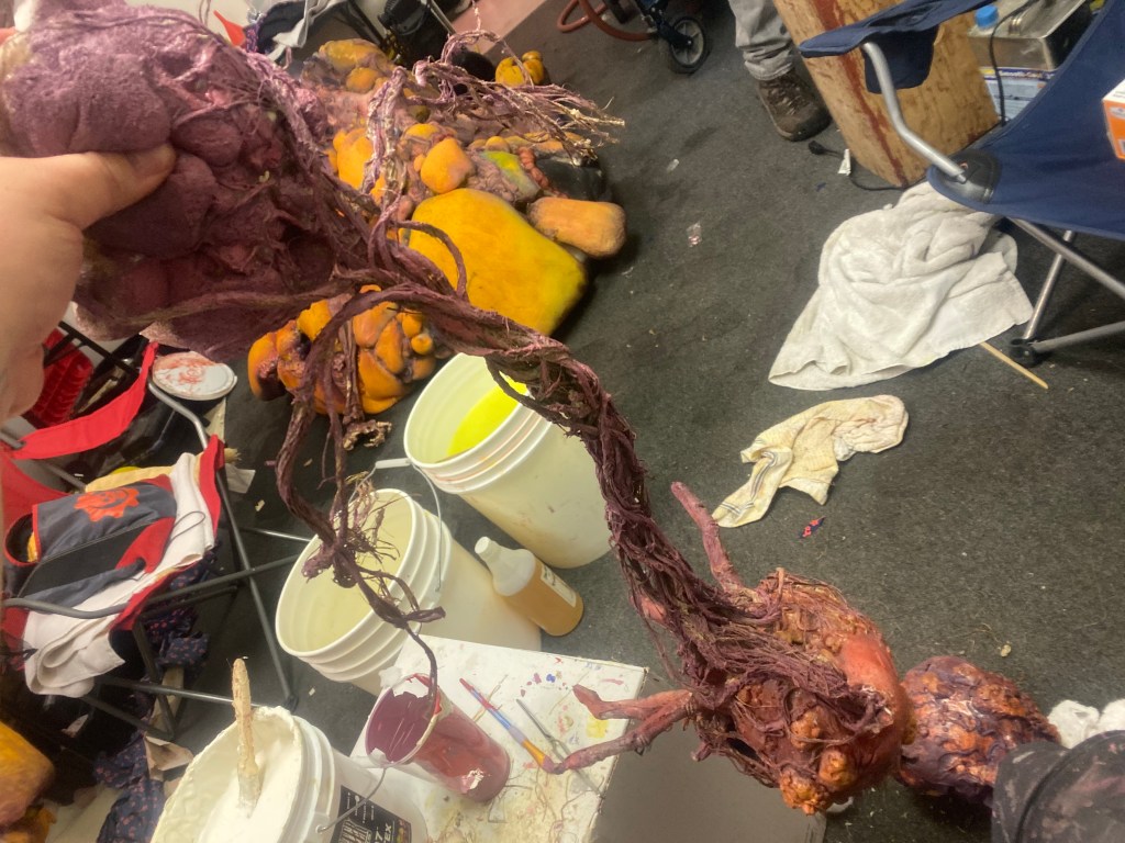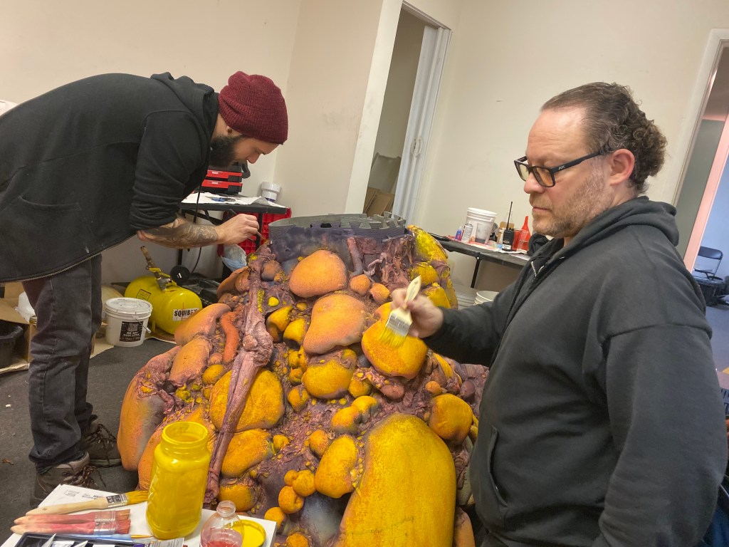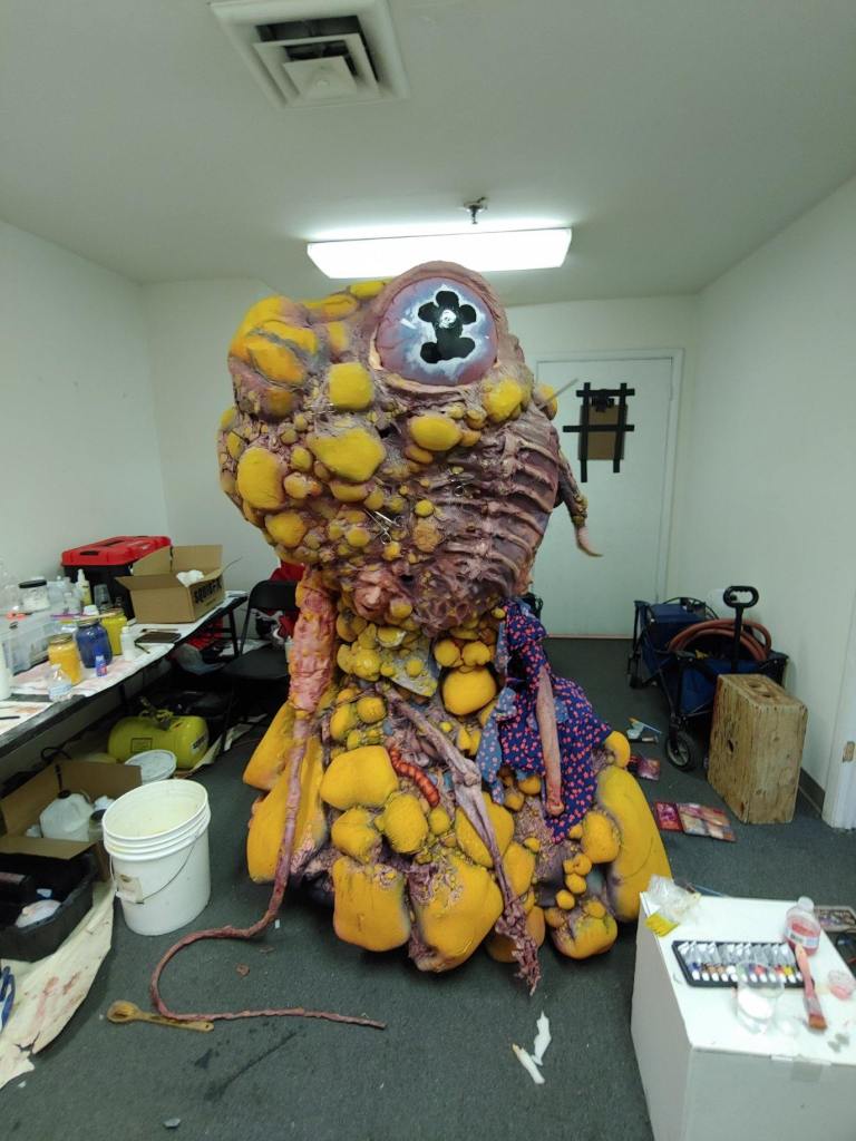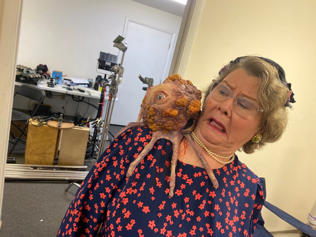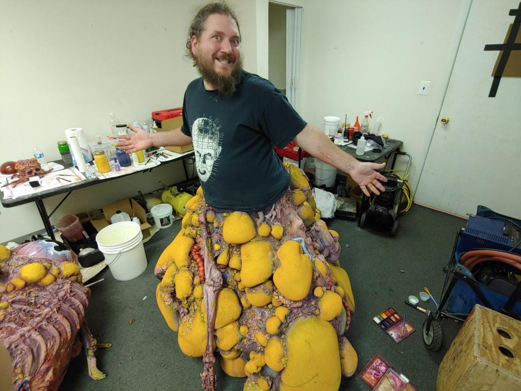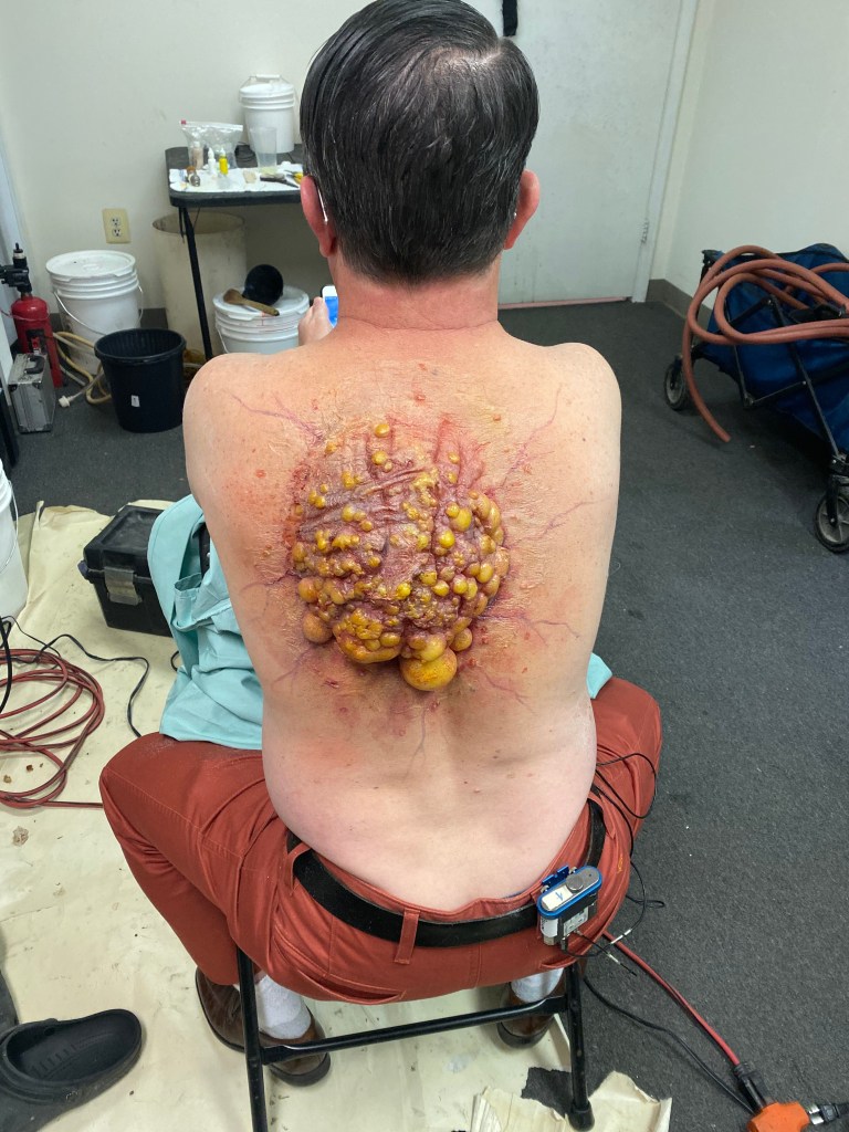 TolinFX Team: Steve Tolin (SPFX Coordinator, MUFX Coordinator, puppeteer), Myself (MUFX Supervisor, SPFX Supervisor, Lead Sculptor, Cyst Monster suit performer), Antonio Grassano (onset SPFX Technician, MUFX Technician, puppeteer), Andrew Sands(SPFX Consultant), Mike Lachimia (Foam Runner, Mold maker), Chris Fern (Creature design illustrator).