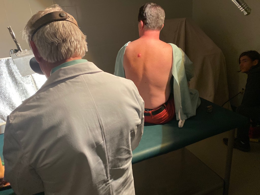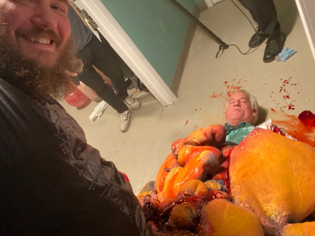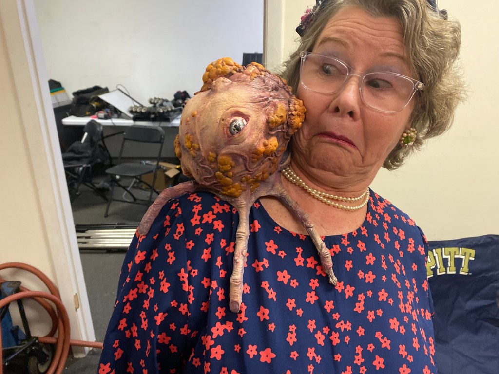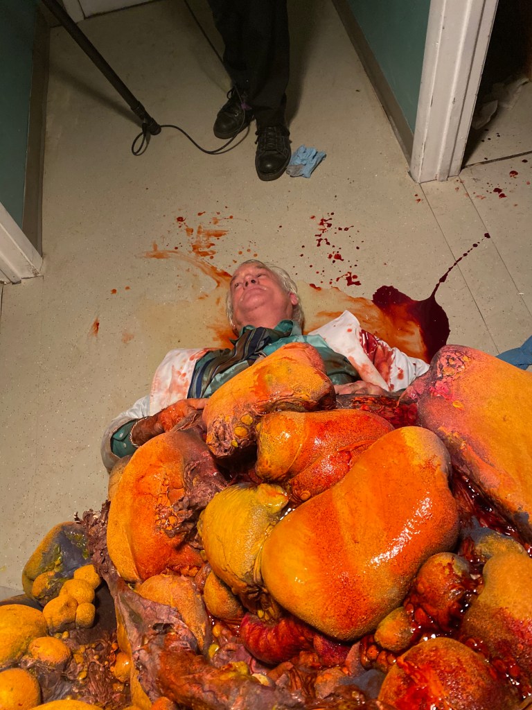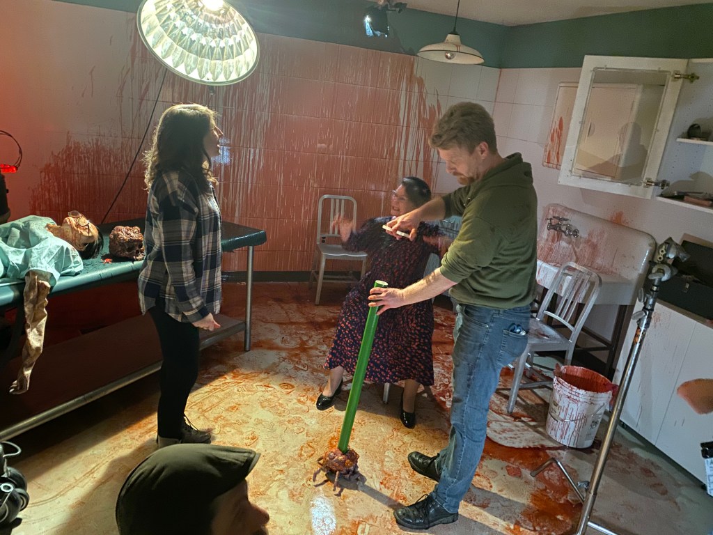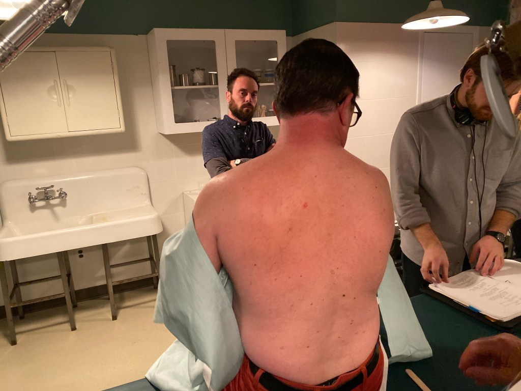 TolinFX Team: Steve Tolin (SPFX Coordinator, MUFX Coordinator, puppeteer), Myself (MUFX Supervisor, SPFX Supervisor, Lead Sculptor, Cyst Monster suit performer), Antonio Grassano (onset SPFX Technician, MUFX Technician, puppeteer), Andrew Sands(SPFX Consultant), Mike Lachimia (Foam Runner, Mold maker), Chris Fern (Creature design illustrator).