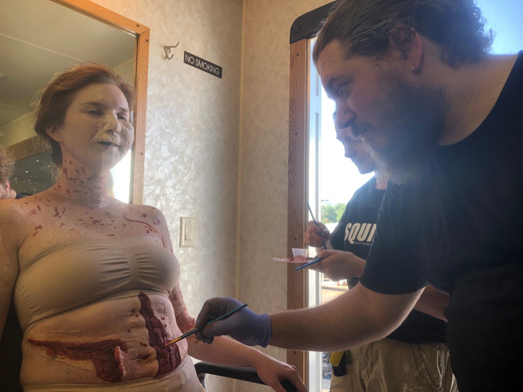 We at Tolin FX had the task of doing some makeup fx for some of the vistims in the show. Recreating some of the horrible events from the 1996 Olympic Park bombing and the Emily Lyons abortion clinic bombing. We did a full body transfer makeup on actress Daina Griffith and her double who portrayed Emily Lyons. We did some prosthetic appliances on actress Soleil Patterson who portrayed bomb victim Fallon Hawthorne. We created a mutilated torso bomb victim. We created a fake rattlesnake and snake bite prosthetic as well.