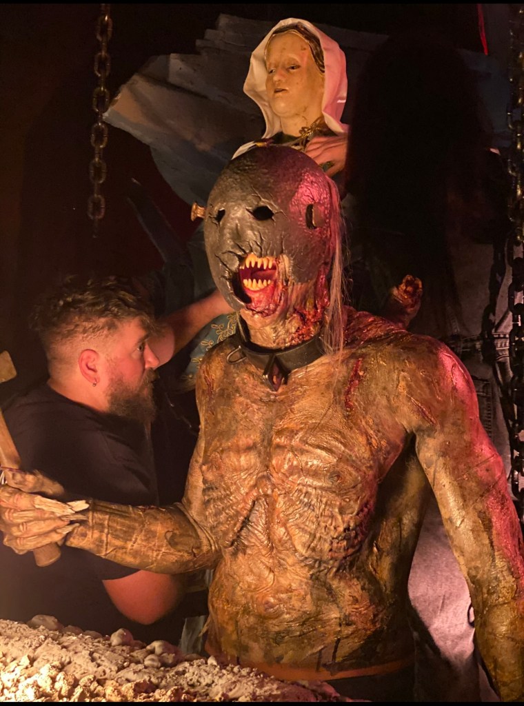 Terrifier 3, Written and Directed by Damien Leone, was a fun film to be a part of. I was hired by Jason Baker of Callosum Studios for sculpting and onset application of the makeup appliances for the Iron Clad Demon character portrayed by Michel Vidal. We got to work alongside Oscar winning makeup artist John Cagliogne Jr. which for me was a career highlight thus far. I was responsible for the the demon’s chest, back, and arm sculpts. John Cagliogne Jr. sculpted the demon’s head and made the dentures for Michel to wear, and Jason Baker sculpted his mask. All 3 of us were involved with the onset application. I helped in the effort to stiffen the wardobe for the Virgin Mary character portrayed by Juliana Lamia. I also had the honor to lightly assist John Caglione Jr. with the Virgin Mary makeup application . Virgin Mary Makeup was sculpted by John Cagliogne Jr. All makeup appliances were casted in Foam Latex by Callosum Studios and John Cagliogne Jr. for the Iron Clad Demon and Virgin Mary Statue characters.