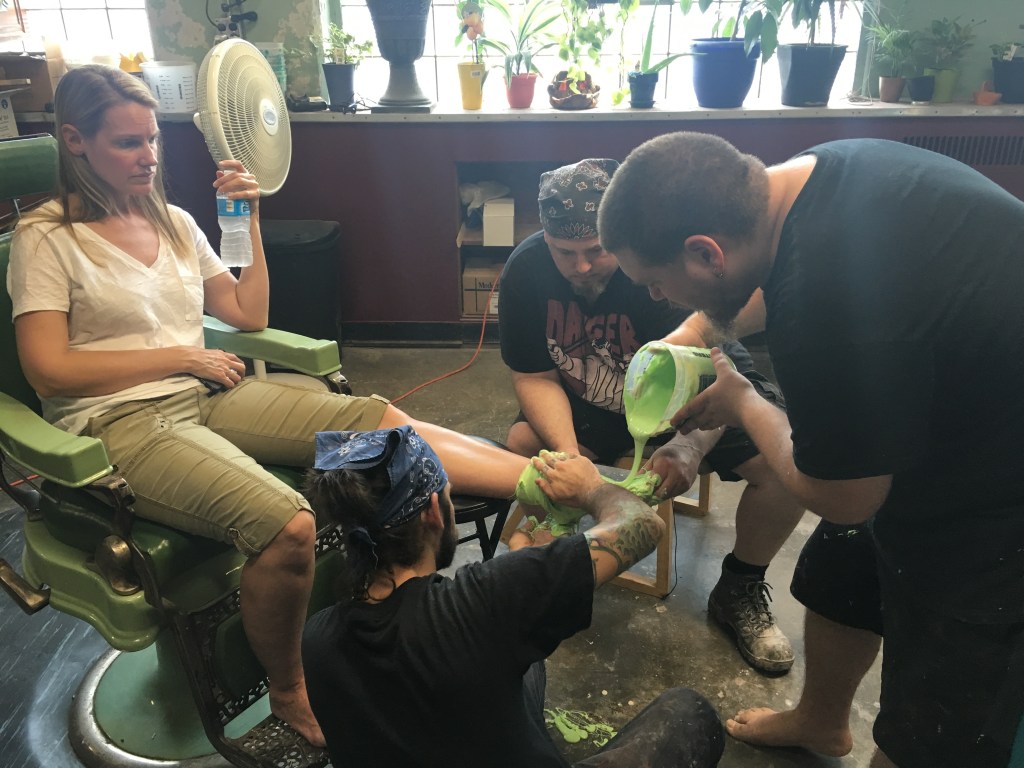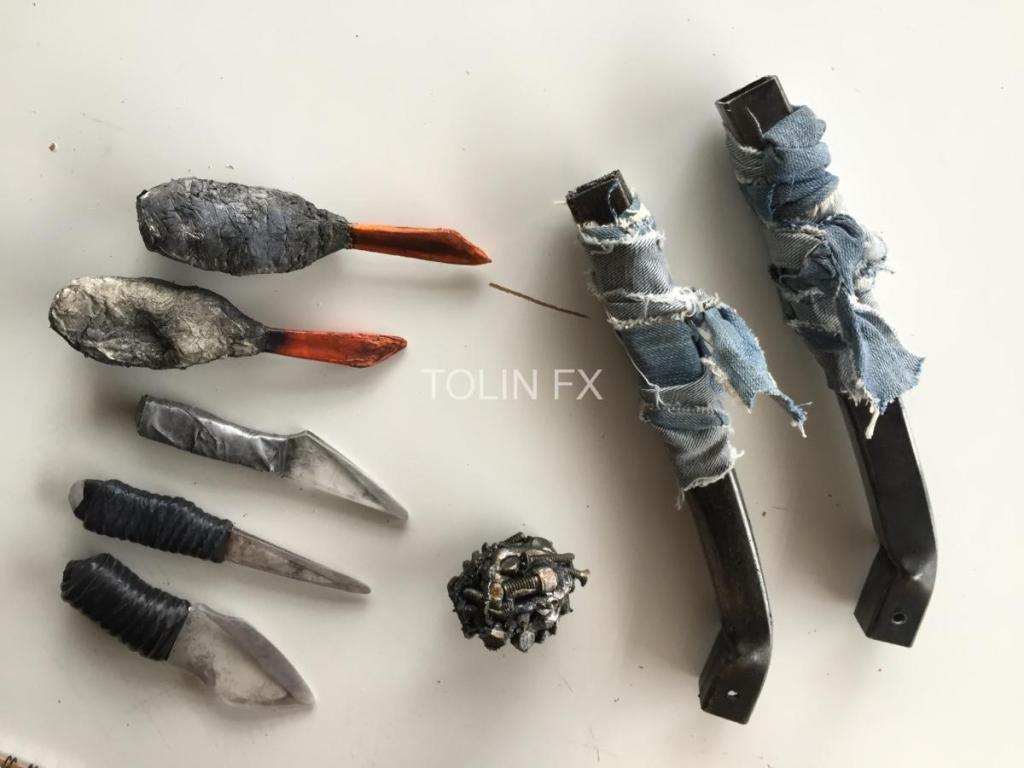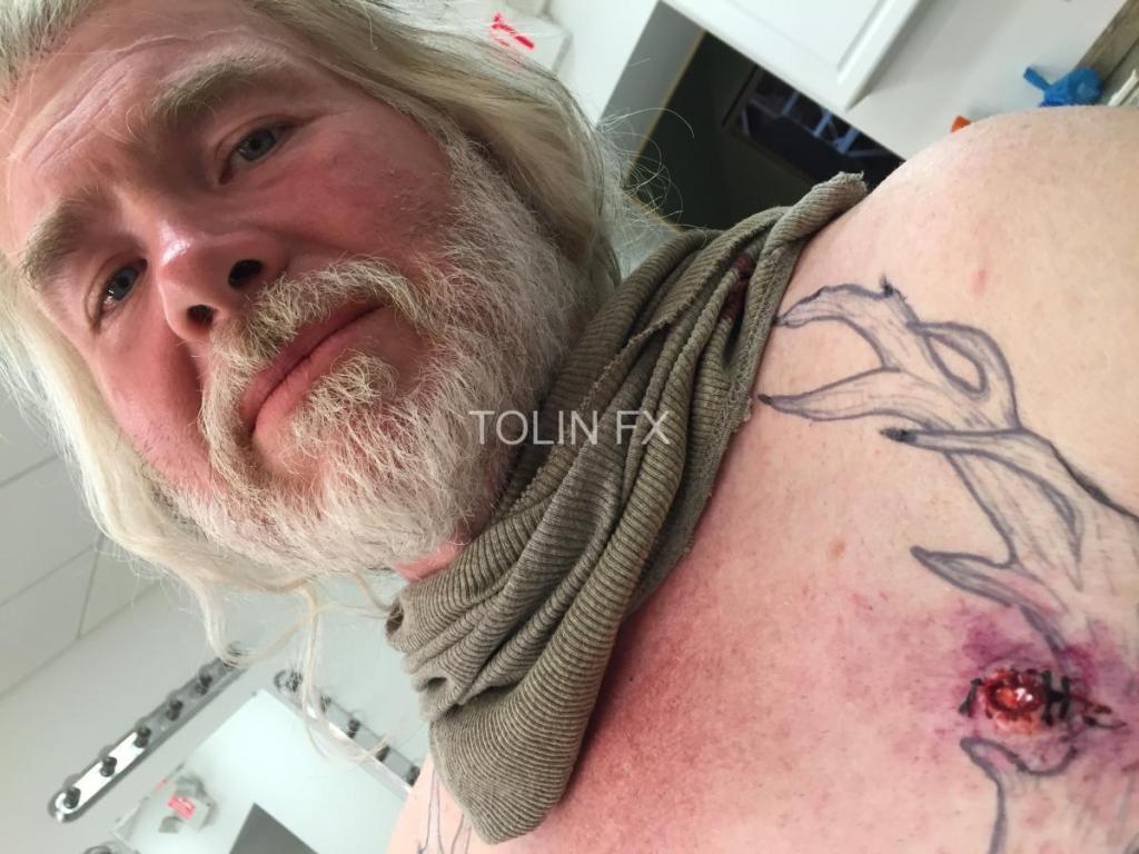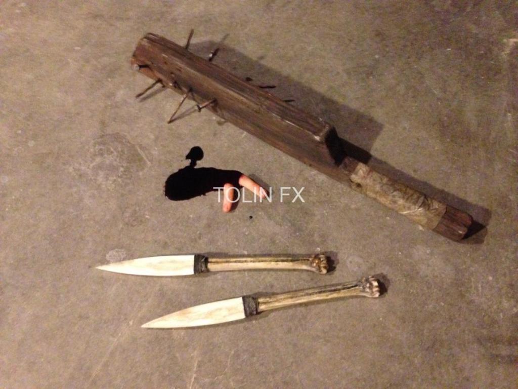 Outsiders seasons 1 & 2 were so much fun. We made tons of prop weapons, safety weapons, breakaway plates, balsa wood shields, headlights, onset blood gags with legs, necks and heads, I sculpted tons of transfer appliances for the makeup department, we made body parts, bleeding rocks and scissors. A lot of friends were made and experiences were had. I cannot say enough good things about working on this show with Tolin FX.